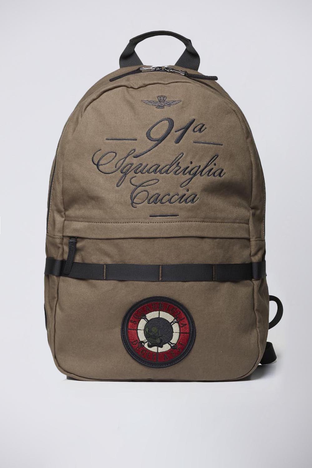 This canvas backpack pays tribute to the legendary 91st Fighter Squadron, also known as the "Squadriglia degli Assi" (Squadron of Aces). This squadron was one of the most famous in the Italian military aviation during World War I and became renowned for its daring exploits. A unique accessory that combines vintage aesthetics with the heroic history of these aviators.