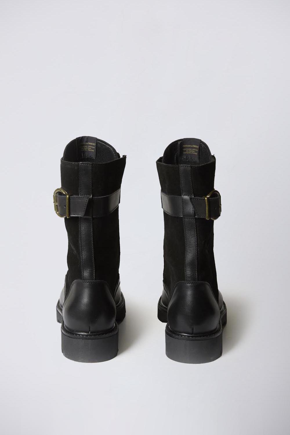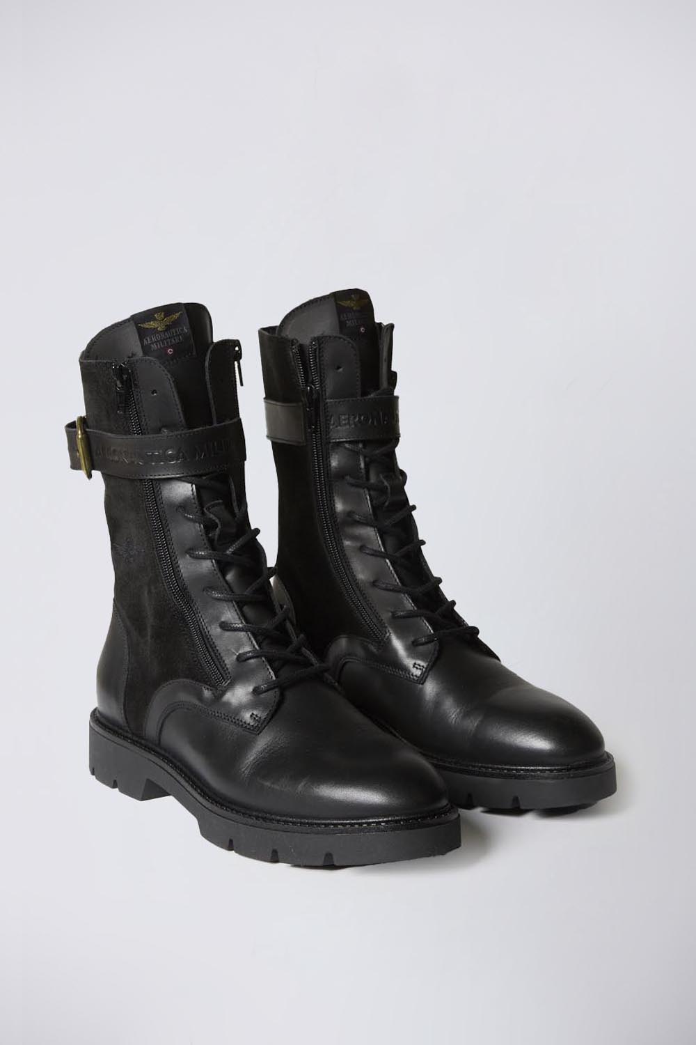 Tyto šněrovací boty s 9ti dírkami, navržené pro silné a odhodlané ženy, jsou ideálním doplňkem pro vytvoření dokonalého vzhledu ve vojenském stylu. Jsou vyrobeny z měkké hladké kůže, mají semišové detaily, dvojité zapínání na zip a podrážku s výstupky pro dokonalou izolaci. Stylové detaily doplňují úpravy na vnější straně svršku, pásku a jazyku.