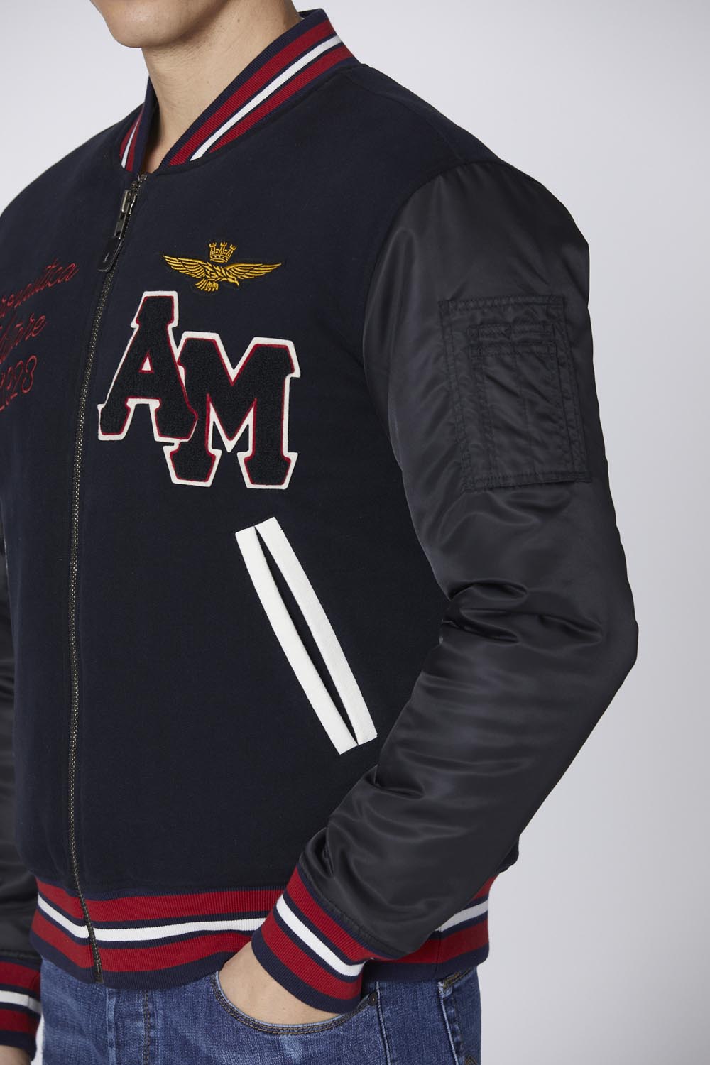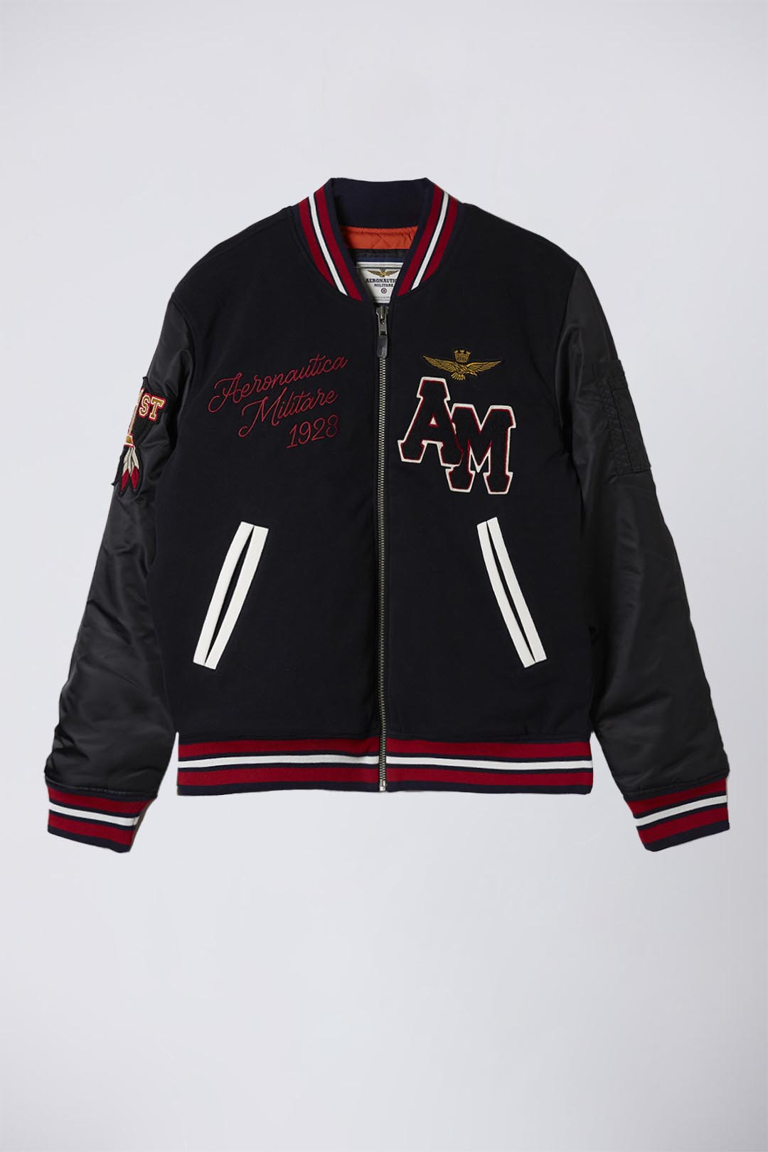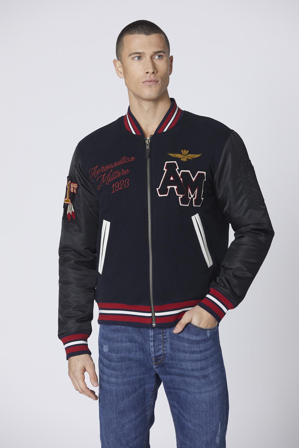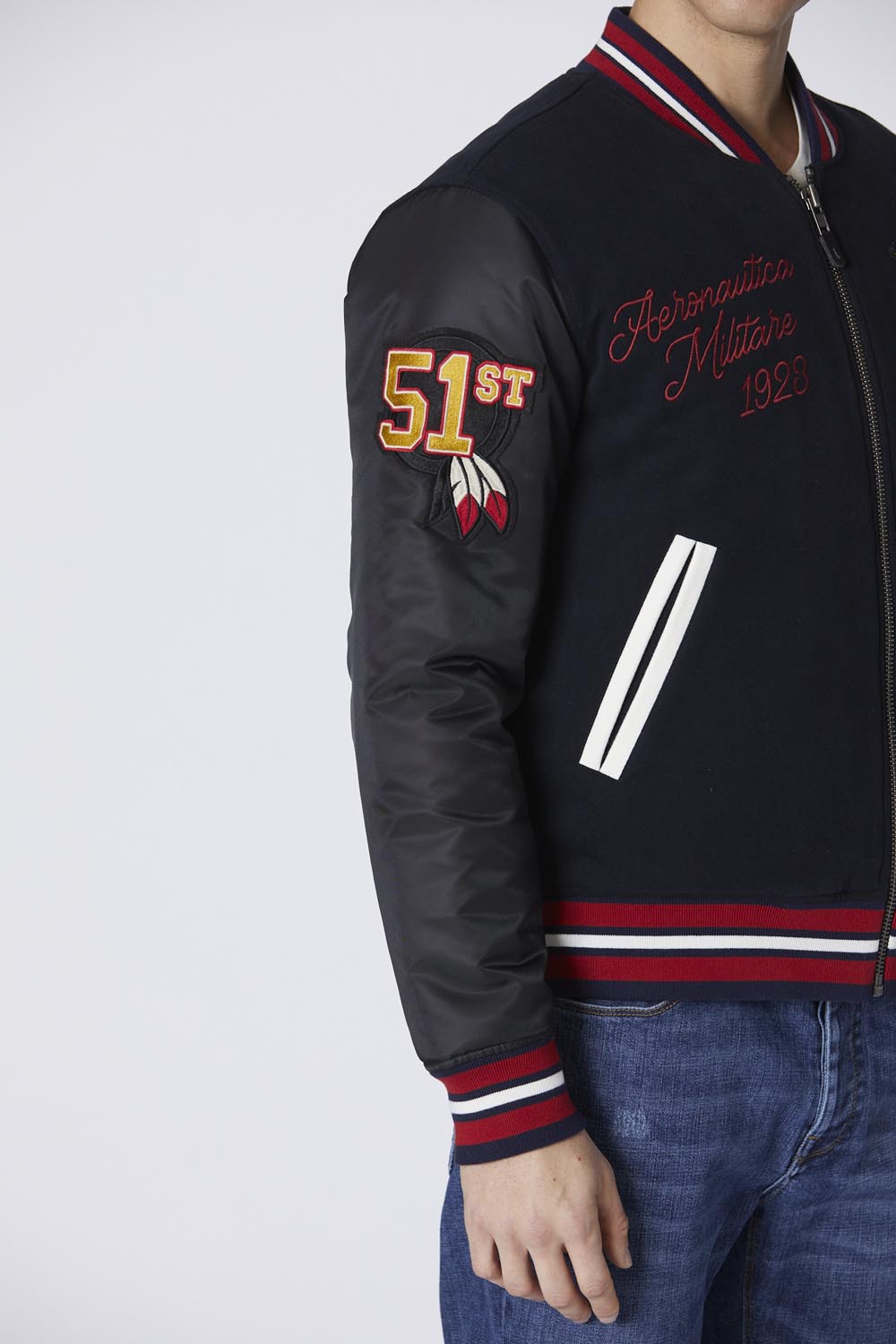 Polstrovaný bomber, který reinterpretuje bohatou grafickou tradici italského letectva ve fascinujícím vysokoškolském a moderním stylu. Propracované detaily a atraktivní design vystihují podstatu 103. letky, jejímž pilotům se přezdívá „indiáni“. Výrazné vyšívané nášivky a trojrozměrné plstěné aplikace oživují oděv vyrobený z důmyslné směsi bavlněného rouna a nylonu, doplněné barevnými žebrovanými detaily.