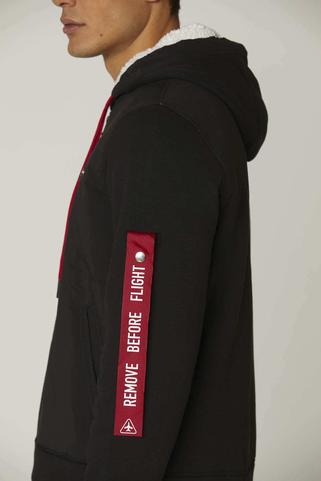 - Odnímatelná páska "Remove before flight" na levém rukávu