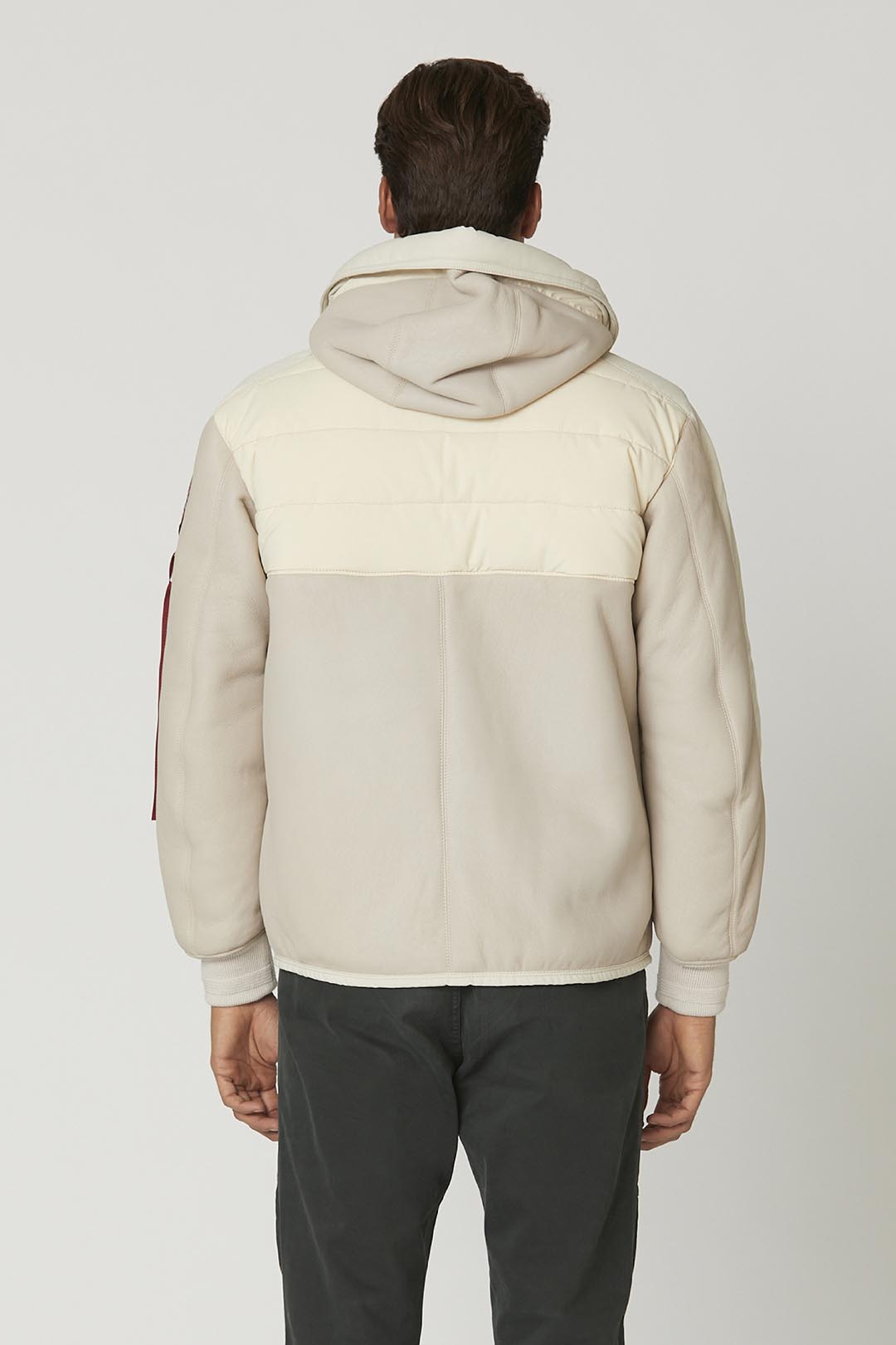 Tato bunda s kapucí, inspirovaná tvary a barvami oblečení používaného během expedice do Antarktidy, vyniká svou univerzálností. Je vyrobena z ovčí kůže s výztuhami oxfordské struktury, uvnitř je vyteplená ripstopem a měkkou kožešinou, která poskytuje jedinečný pocit tepla. Tento oděv, obohacený o praktické kapsy, které mu dodávají dostatek prostoru, a ozdobený nášivkami a stuhami inspirovanými vojenskou tématikou, nesmí chybět ve vaší sbírce.