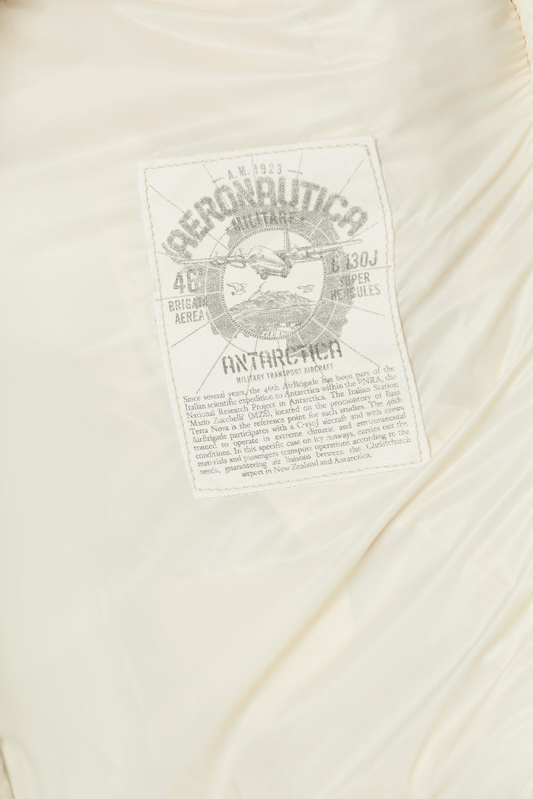 - Vnitřní štítky s historií oděvu a expedice do Antarktidy