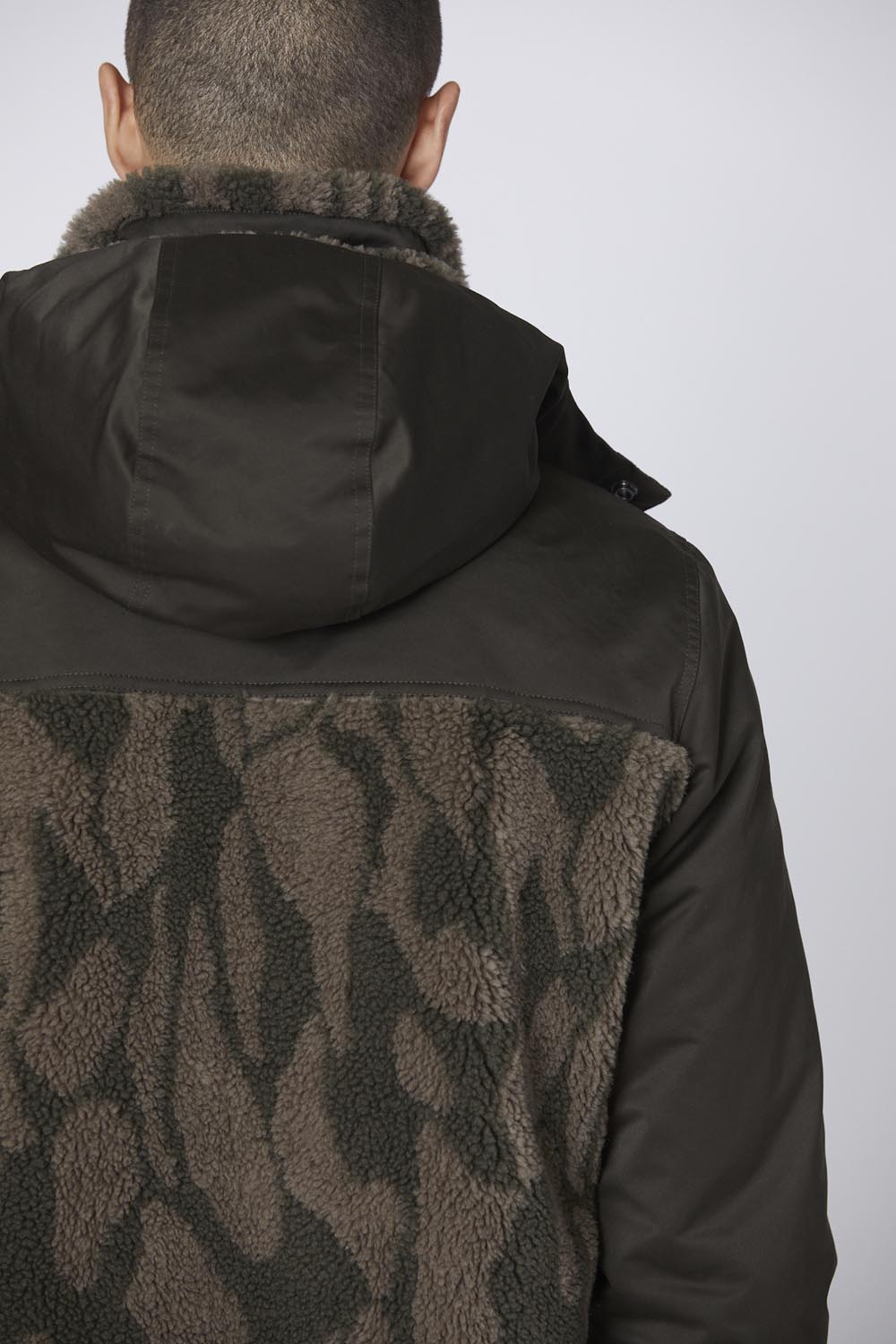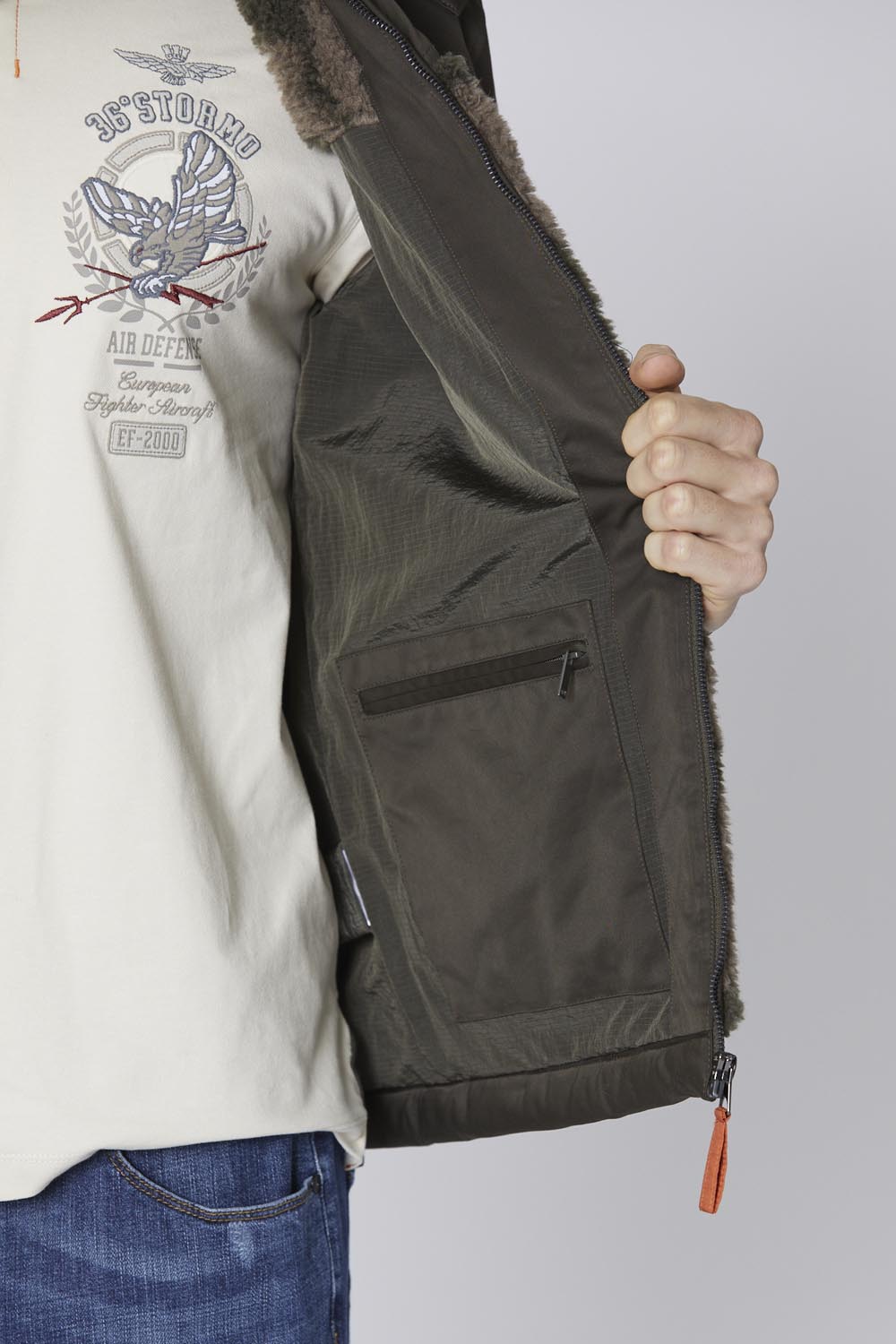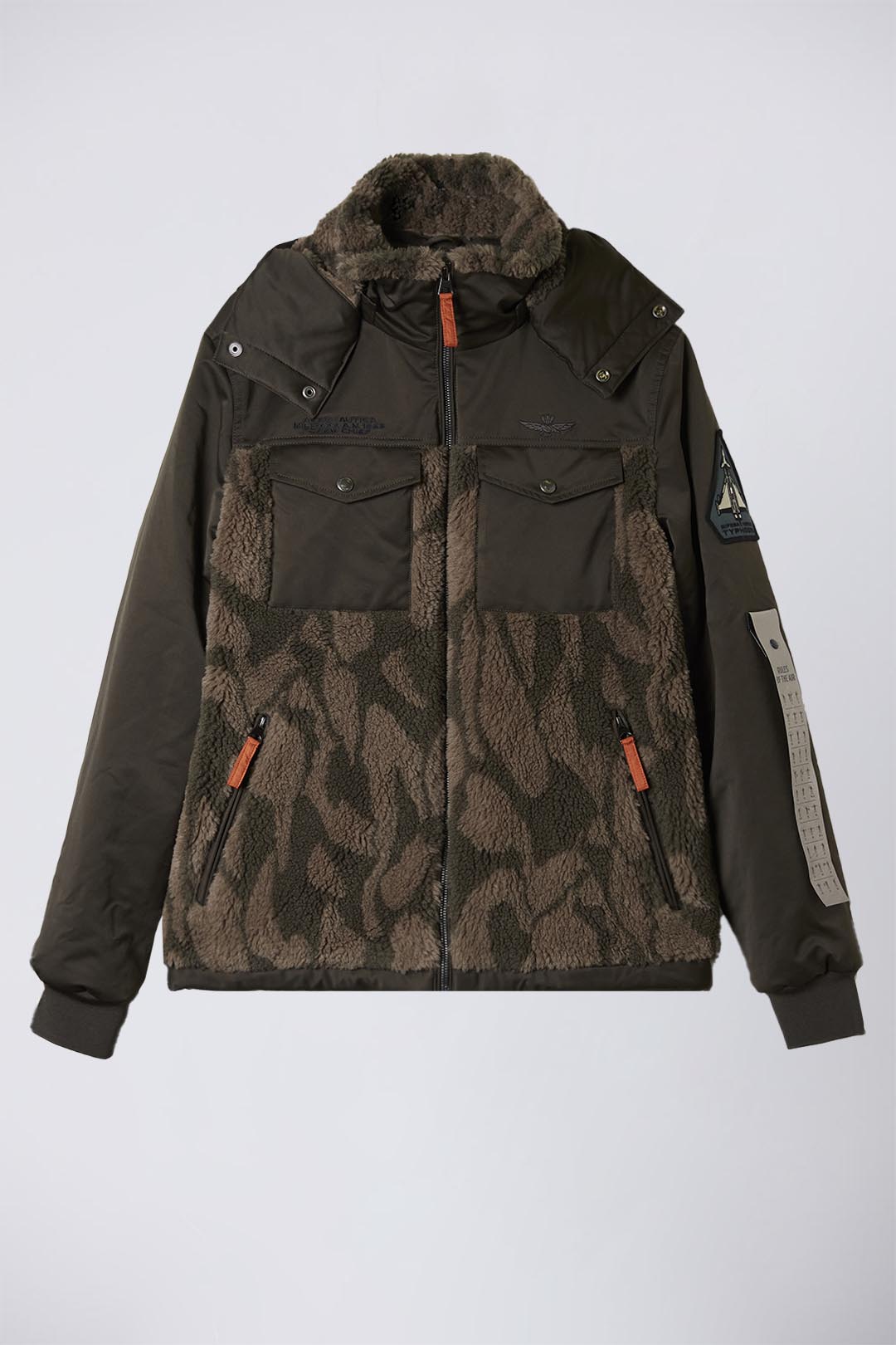 Tato bunda kombinuje dvě různé látky: měkkou žakárovou ekokůži s jedinečným maskovacím vzorem a lesklý nylonový taft. Výrazný design a úpravy oslavují operační roli velitele posádky a 36. křídla, zatímco odnímatelná kapuce dodává všestrannost.