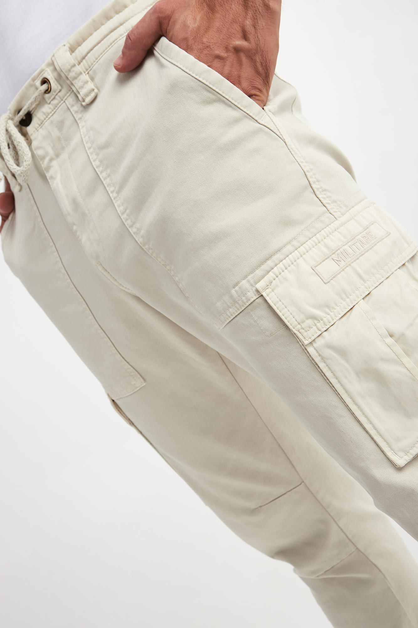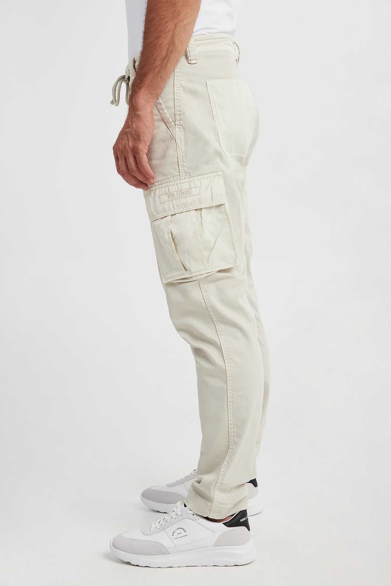 Tyto kalhoty s moderním a sportovním nádechem, inspirované vojenským stylem, jsou vybaveny řadou kapes, které oděvu dodávají další prostor a osobitost. Nastavitelný pas se stahovací šňůrkou a elastická bavlněná tkanina zajišťují pohodlné a uvolněné nošení.