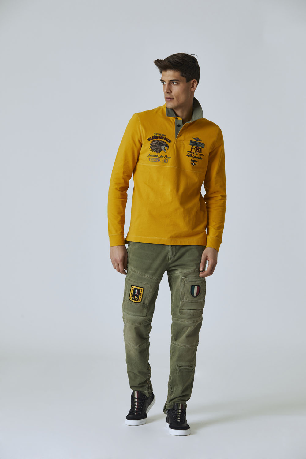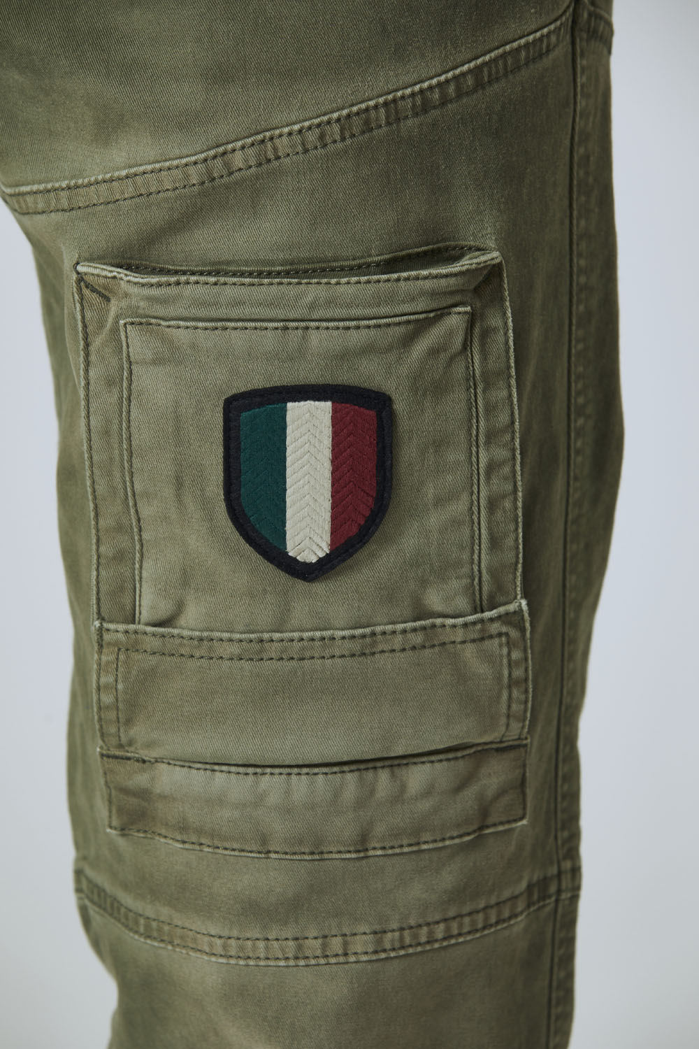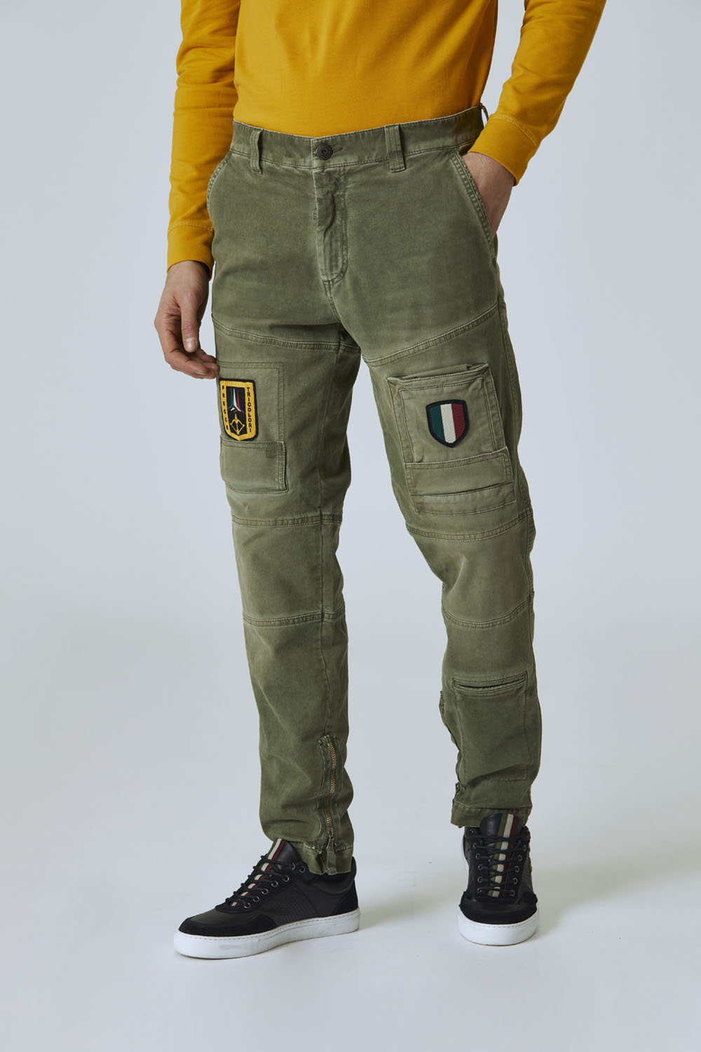Tyto vintage matné strečové bavlněné kalhoty Anti-G patří do Archive Capsule věnované Frecce Tricolori. Tato verze, zdobená obnovenou grafikou PAN, nejlépe doplní vaši sbírku klasických značkových kalhot Aeronautica Militare přidáním nádechu originality.
