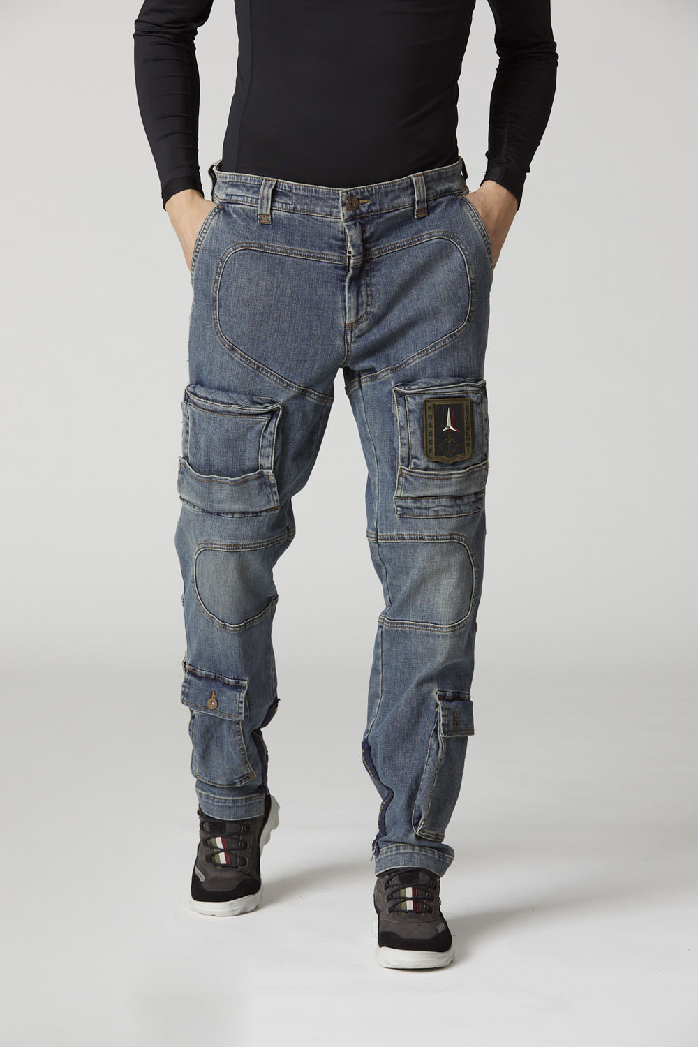 Kultovní kalhoty Anti-G, inspirované leteckými kombinézami pilotů italského letectva, jsou nyní nabízeny z jedné z nejoblíbenějších a nejuniverzálnějších tkanin: strečového denimu se speciálním vintage opráním. Jedinečný model, který můžete zařadit do své sbírky.