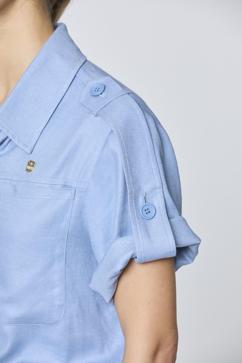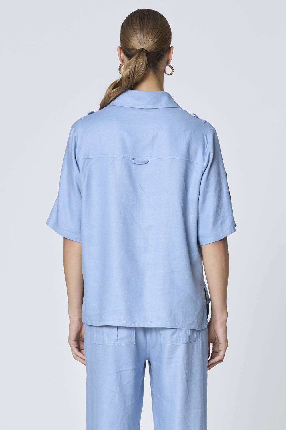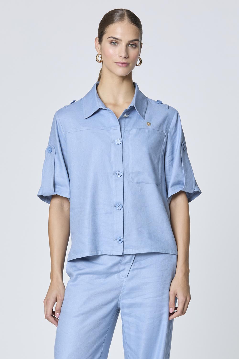 Tato košile ze směsi viskózy a lnu je lehká a pohodlná. Díky nastavitelným krátkým rukávům a detailům inspirovaným vojenským stylem je dokonalým kouskem pro svěží a rafinovaný vzhled.