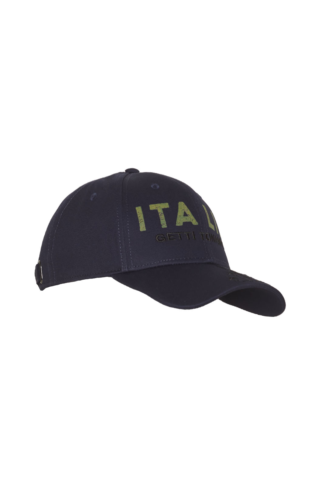 Slavnostní baseballová čepice, která patří k limitované edici věnované Getti Tonanti. Tento italský akrobatický tým byl založen v roce 1953 v rámci 5. křídla Villafranca di Verona. Potisky a nášivky, které jej zdobí, jsou archivní grafikou, která oděvu dodává exkluzivní a vintage vzhled.