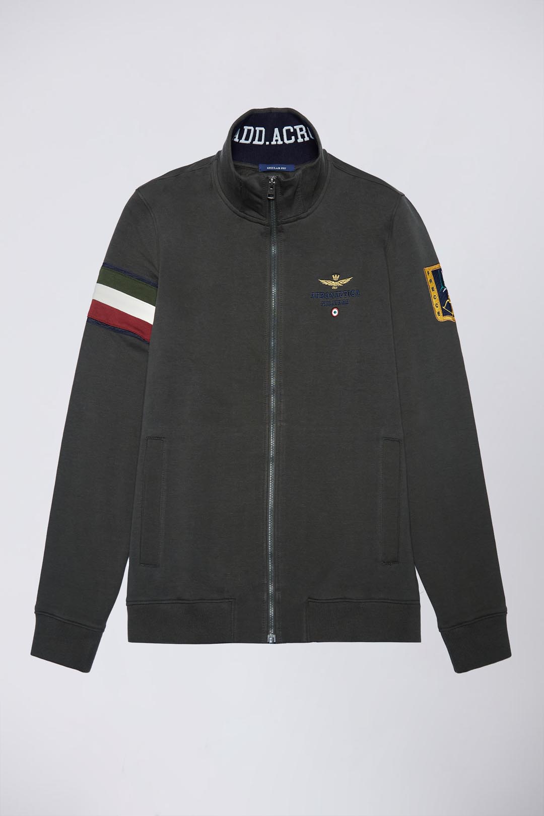 Celopropínací mikina z hřejivé broušené bavlny navržená pro autentický a smysluplný vzhled. Tříbarevná vsadka lemuje pravé rameno, zatímco na levém rameni vyniká exkluzivní nášivka Frecce Tricolori. Výrazné výšivky se skrývají uvnitř límce a na hrudi a dodávají každému oděvu nádech prestiže.