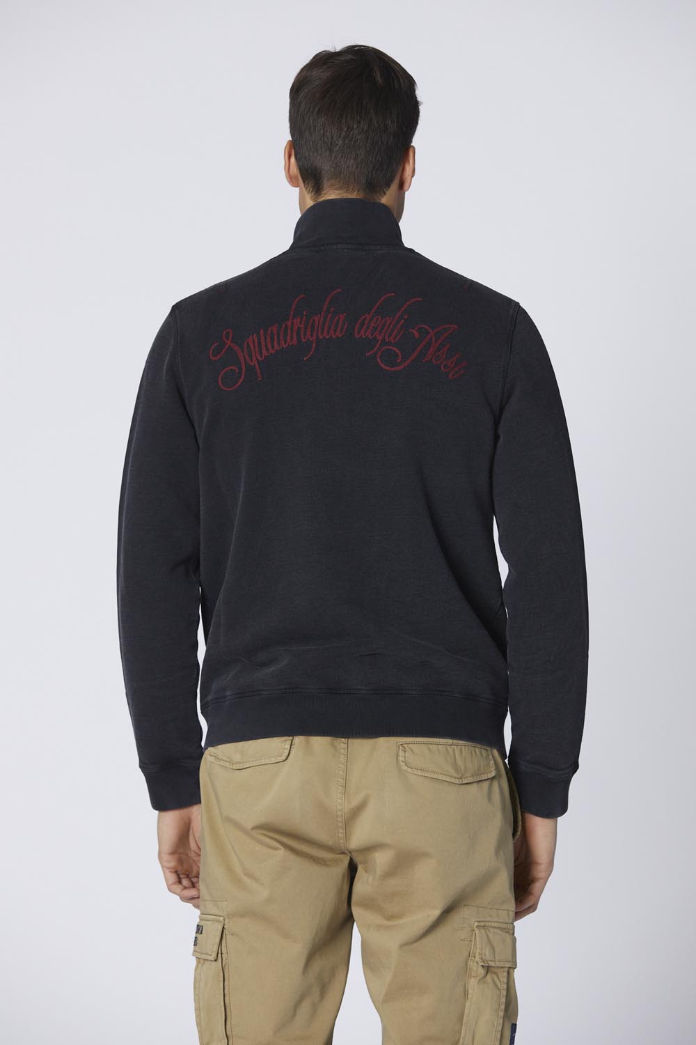 Tato bavlněná mikina, která je součástí kolekce Squadriglia degli Assi, vzdává hold 91. letce a výjimečným schopnostem, které její piloti prokázali během první světové války.Úpravy jsou provedeny technikou vyšívání Cornely, při níž se přímo na látku našívají prvky stuhy. Kamínková úprava dodává jedinečný vintage efekt, díky němuž je tento oděv výrazný a jedinečný.