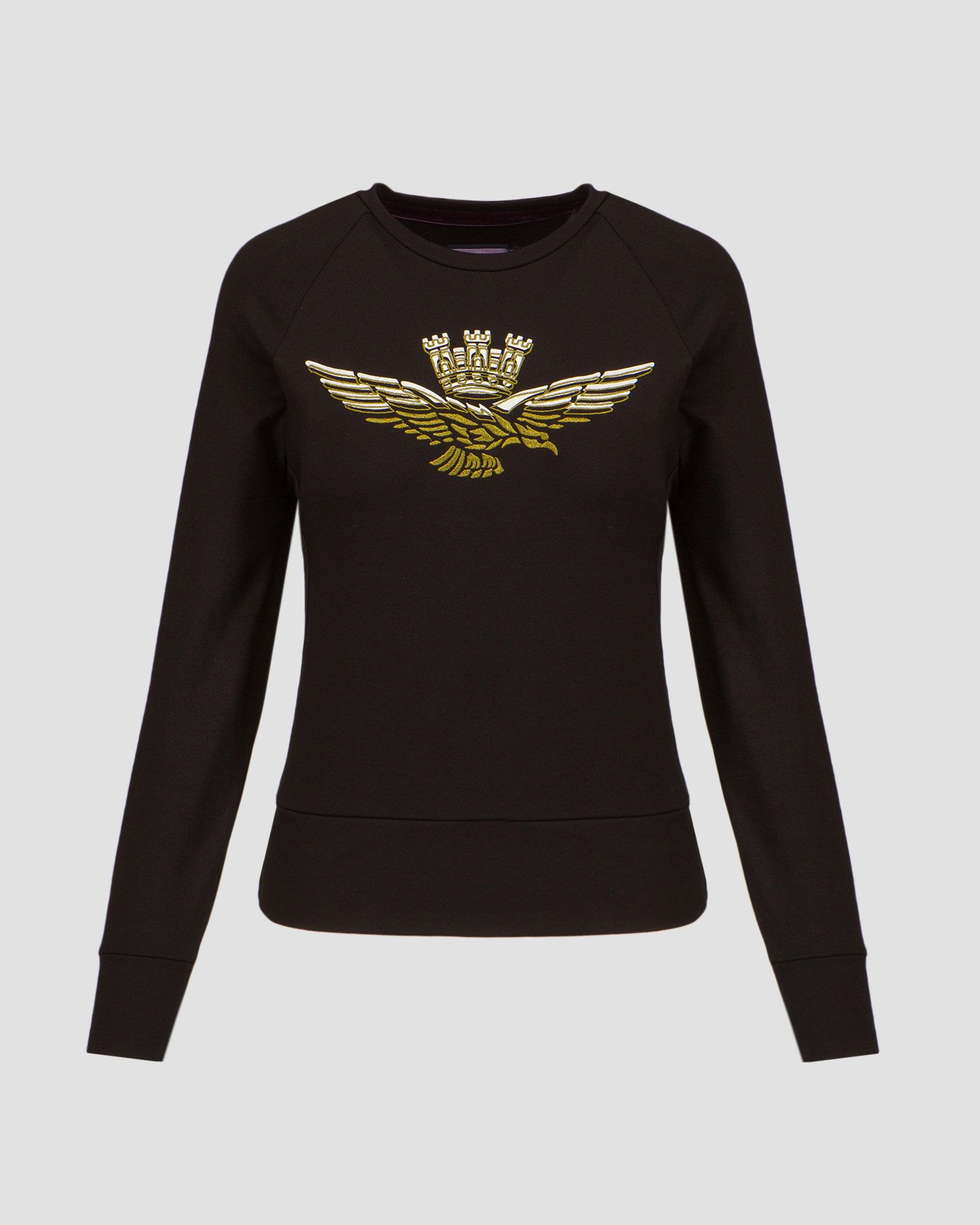 Tato mikina s výstřihem z měkké elastické viskózy je navržena jako doplněk sportovního vzhledu, zdobí ji kontrastní stuhy na bocích a na přední straně dominuje grafika s podpisem korunovaného orla.