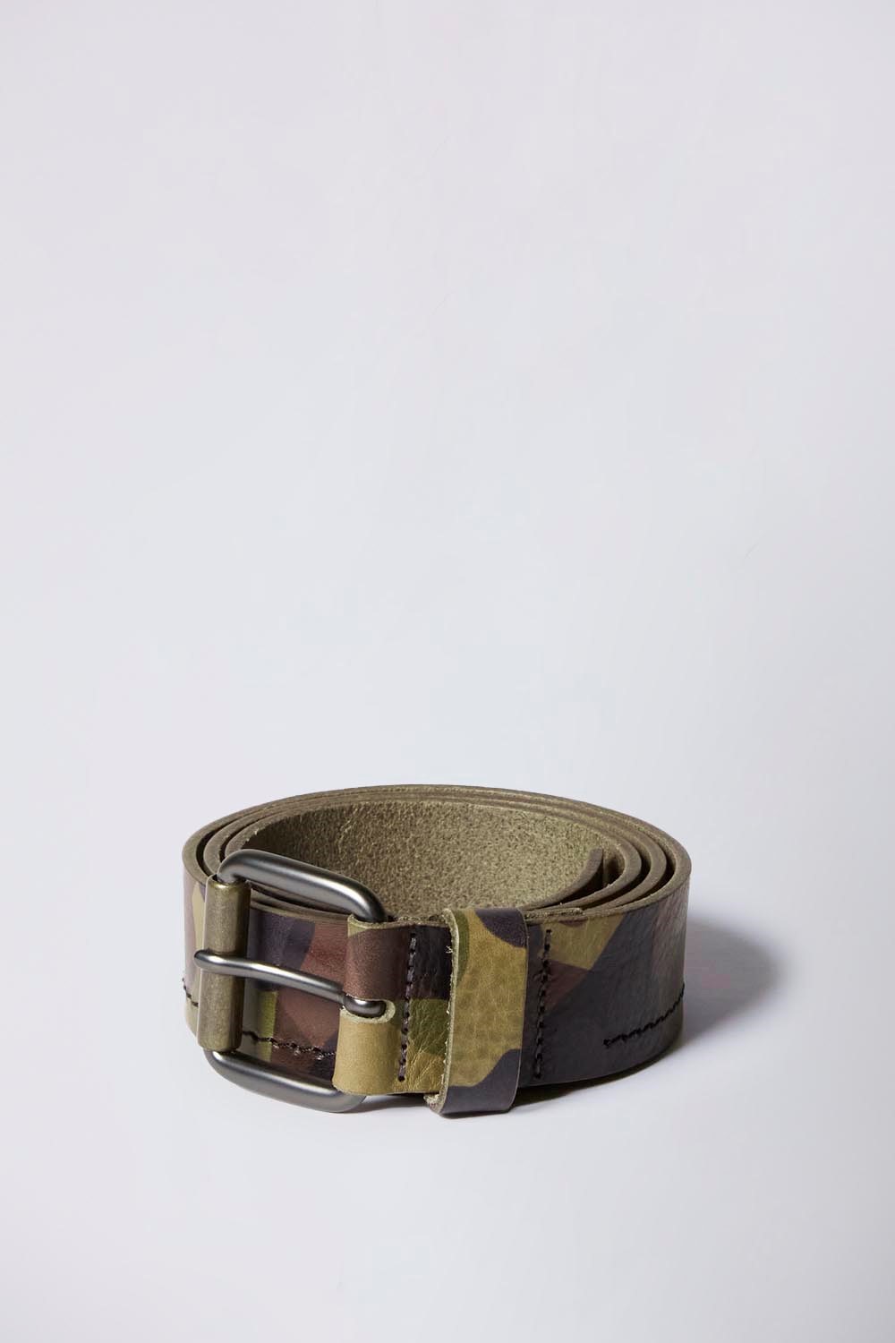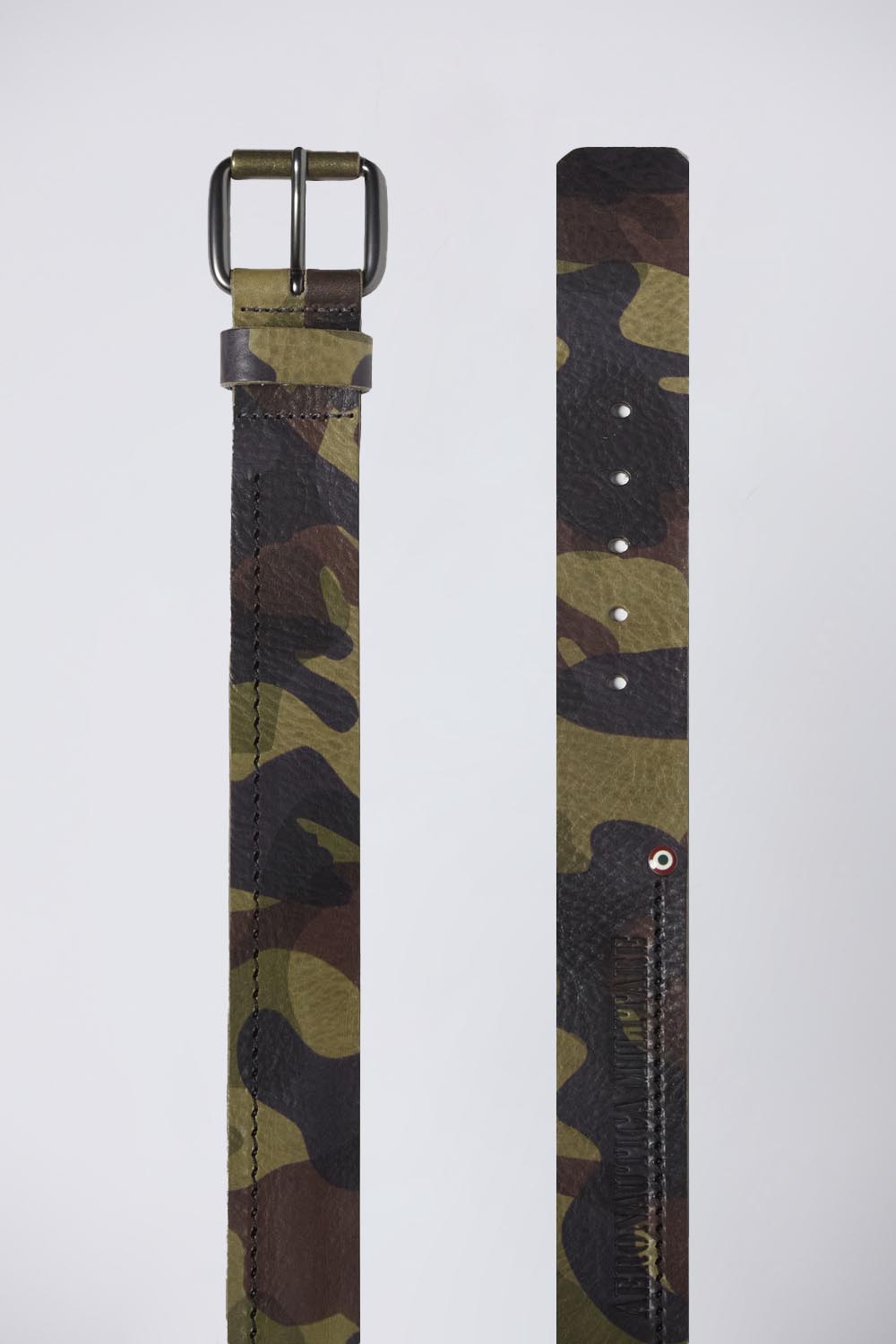 Tento opasek z vysoce kvalitní hovězí kůže má živý maskáčový vzor, který dodá každému vzhledu nádech dobrodružství a originality. Je vybaven robustní kovovou jednopřezkovou válečkovou sponou, doplněnou tříbarevnou rozetou a logem vyraženým horkou ražbou. Tento exkluzivní doplněk je ideální pro doplnění jakéhokoli outfitu o výrazný prvek.