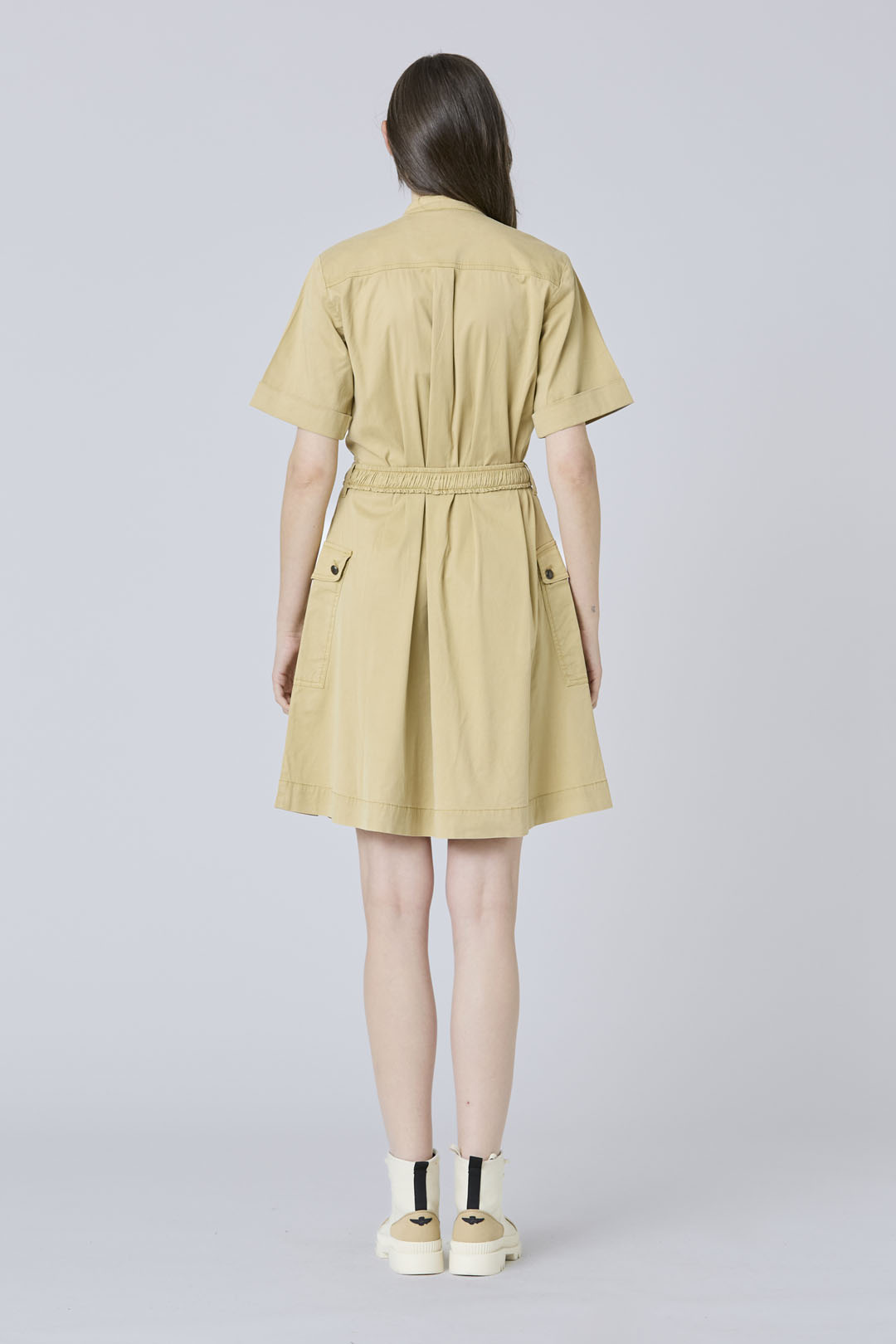 Tyto košilky s krátkým rukávem bez námahy spojují vojenskou estetiku s moderní ženskostí. Lichotivá délka nad kolena v kombinaci s páskem v pase umožňuje přizpůsobení střihu, které zdůrazňuje siluetu. Ozdobné knoflíky a praktické kapsy dodávají šatům ten správný střih, díky čemuž jsou ideální volbou pro ležérní i elegantně-ležérní příležitosti.