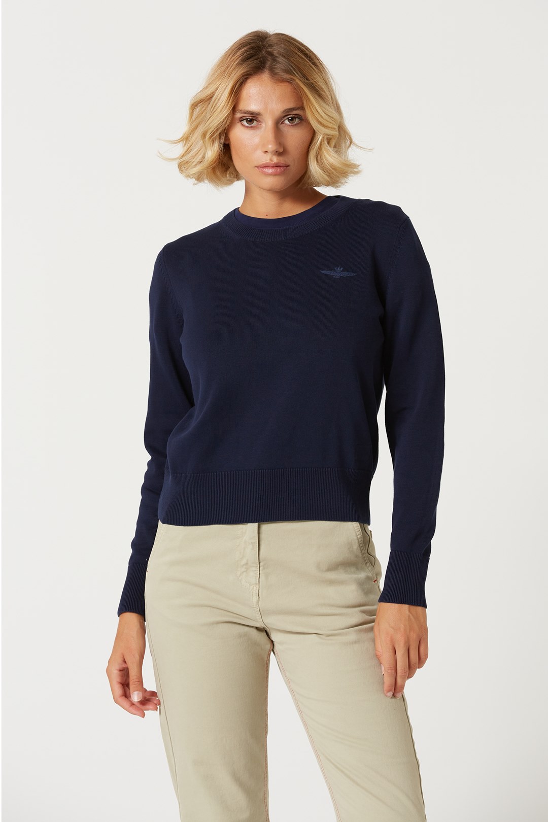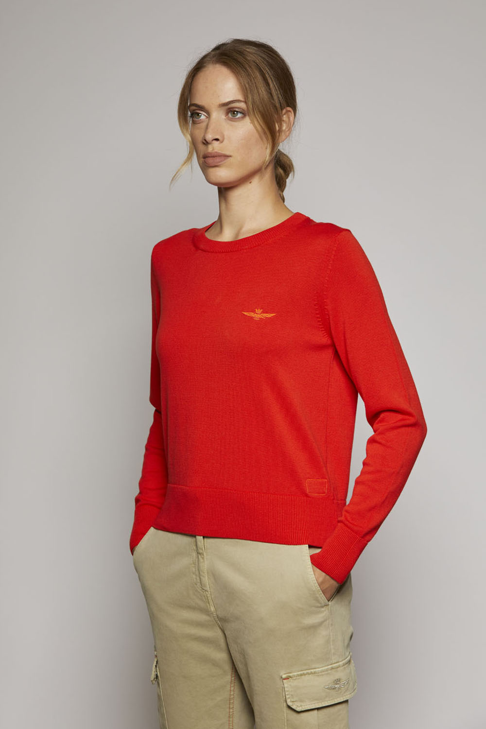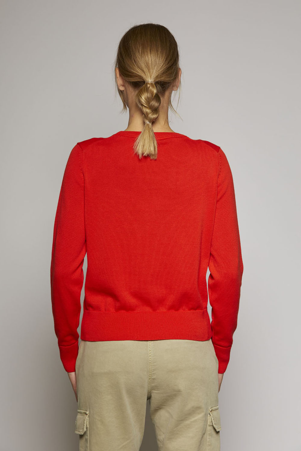 Základní bavlněný svetr s výstřihem, který se snadno přizpůsobí jakémukoli typu vzhledu, od těch nejbarevnějších a nejdynamičtějších až po ty tradičnější a rafinovanější.