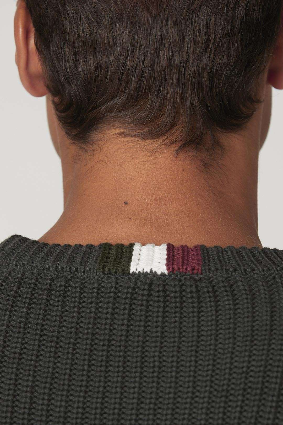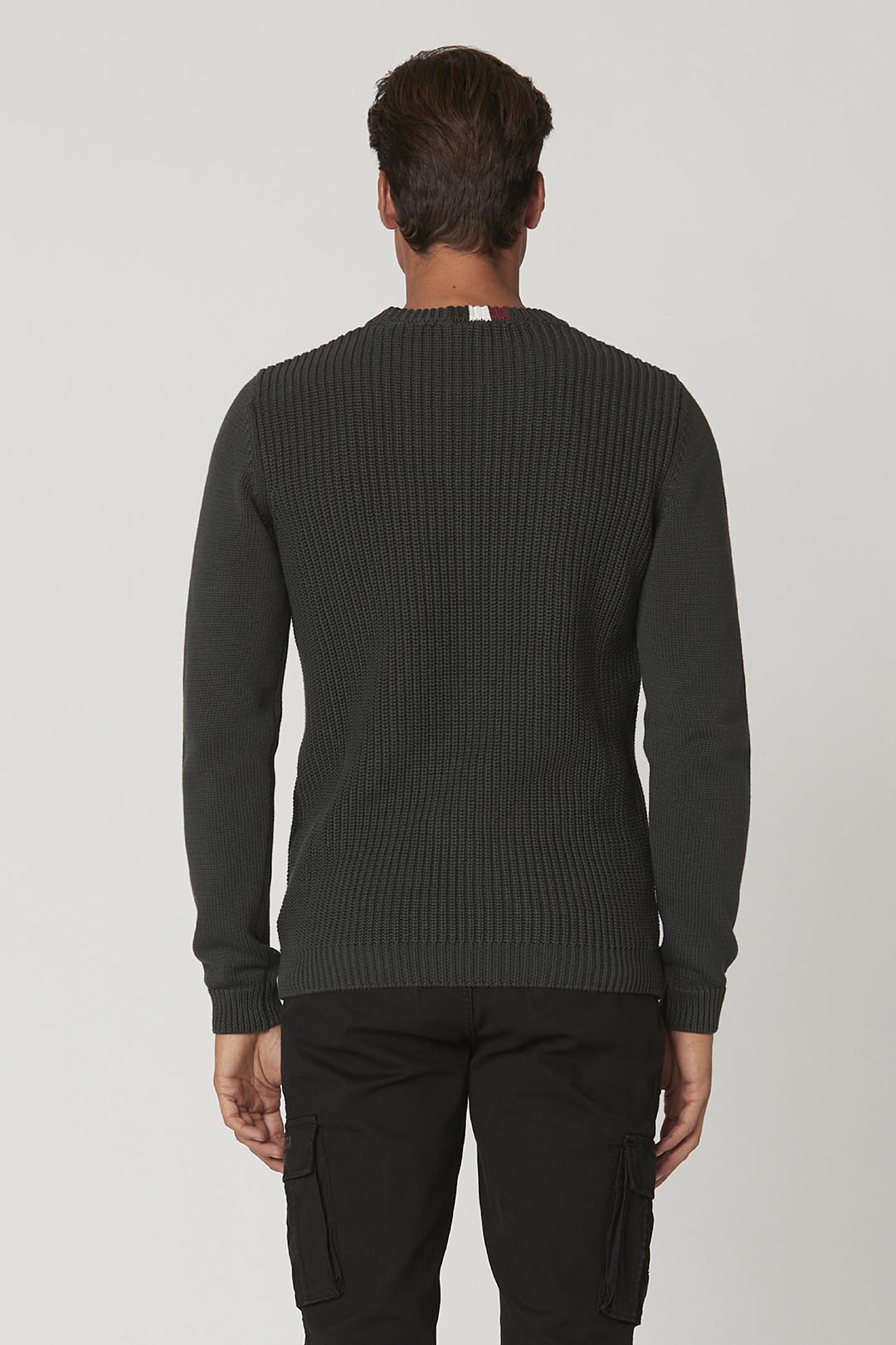 Oživte svůj zimní šatník tímto pulovrem nabízeným v různých zářivých barvách. Tento čistě bavlněný kousek, který je zásadní ve svých úpravách, vyniká rybářským žebrovým úpletem na těle a hladkým úpletem na rukávech, což vytváří ležérní, ale působivý vzhled.