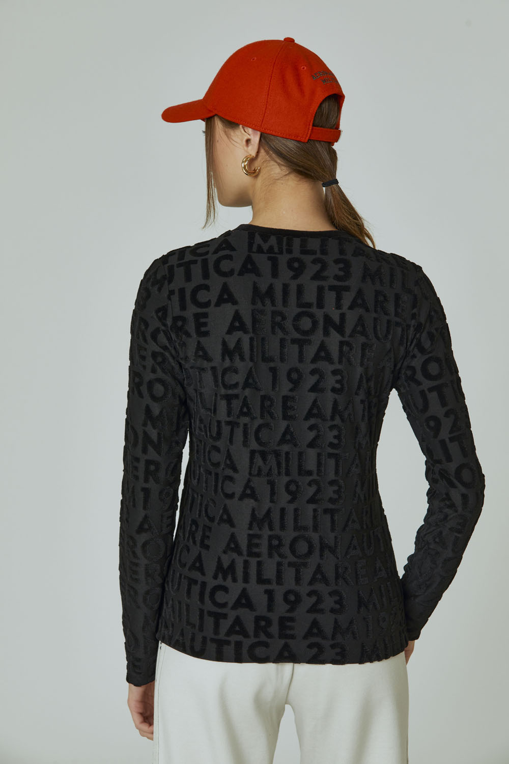 Velkolepý 3D efekt charakterizuje toto tričko s dlouhým rukávem získaným devoré potiskem, který odstraňuje část látky a vytváří sugestivní vzory, které hrají na kontrastu mezi plnými a prázdnými prostory.